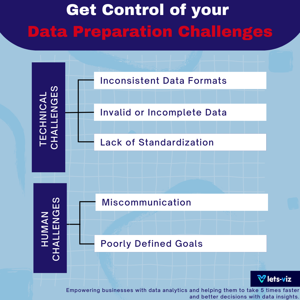 Data preparation challenges can be divided into two broad categories: technical challenges and human challenges.