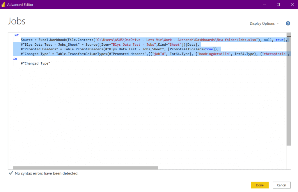9. Go to that Excel table’s Advanced Editor; you’ll see something similar there.