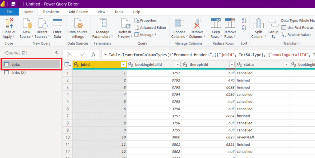 8. Go to the excel source table that is shown under Queries after clicking Done.