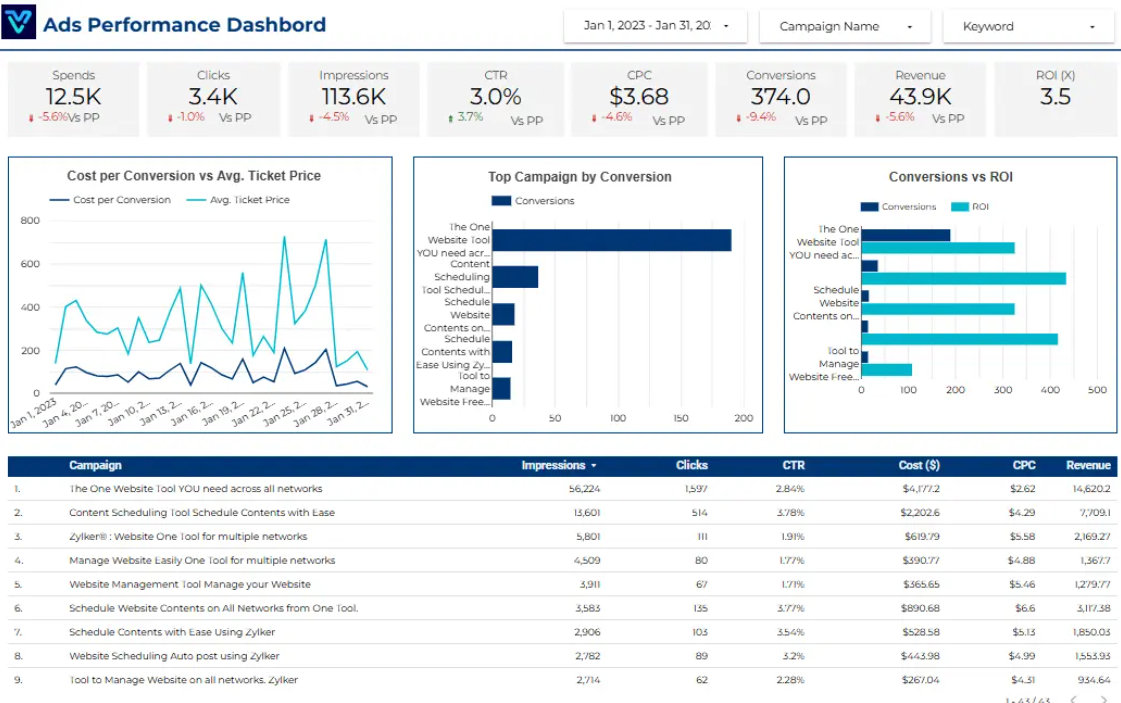 Ads performance overview dashboards provide a clear, consolidated view of all ad metrics. This eliminates confusion and helps businesses understand which ads are performing well and which ones need improvement.