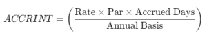 ACCRINT(issue_date, first_interest_date, settlement_date, rate, par, frequency, [basis])