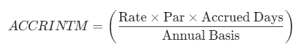 The accrued interest formula used by ACCRINTM is: