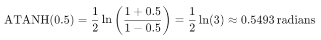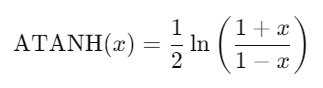 The ATANH function calculates the inverse hyperbolic tangent using the formula: