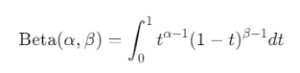 Beta(α, β) is the beta function, calculated as:
