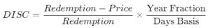 DISC(settlement, maturity, price, redemption, basis)