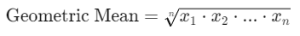 For n positive numbers derived from the <expression> for each row in <table> ( x1, x2, …, xn ), the geometric mean is calculated as: