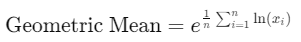 • Grouped Analysis: Compute geometric means for subsets of data, such as categories or segments.
