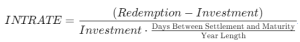 INTRATE(Securities[Settlement], Securities[Maturity], Securities[Investment], Securities[Redemption])