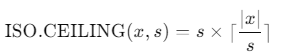 - ISO.CEILING(-7.2, 3) → 9 (note that the result is positive).