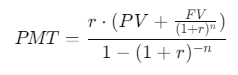 Incorporate future value (FV) and payment type (Type) into calculations: