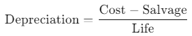 SLN(cost, salvage, life)