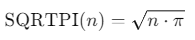 The SQRTPI function calculates the square root of a number multiplied by π.