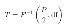 The T.INV.2T function calculates the critical t-value such that the given probability PP is split equally between the two tails of the distribution. The function works as follows: