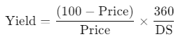 A Treasury bill has a settlement date of January 1, 2025, a maturity date of April 1, 2025, and a price of $98.50. Calculate the yield: