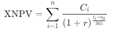 The XNPV function calculates the net present value of cash flows occurring at irregular intervals, based on a specified discount rate.