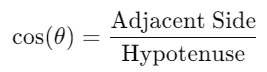 COS(RADIANS([Angle in Degrees]))| Input (θ in radians) | Calculation | Result |