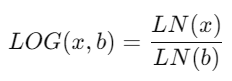 LN(x)is the natural logarithm (base e).bis the chosen base.