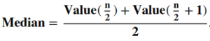 Median = Valuen+1/2